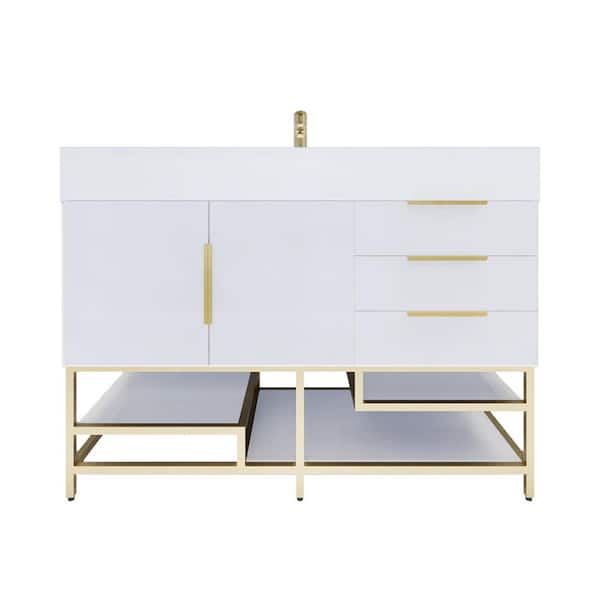 Bethany 47 in. W. x 20 in. D x 36 in. H Single Sink Freestanding Bath Vanity in High Gloss White with White Acrylic Top