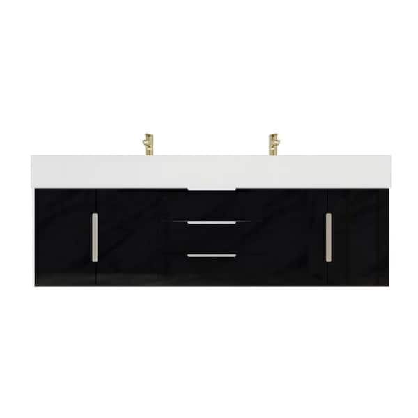 Bethany 59 in. W. x 20 in. D x 22 in. H Double Sink Floating Bath Vanity in Gloss Black with White Acrylic Top