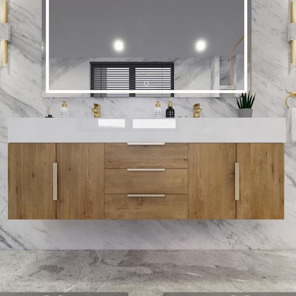 Bethany 59 in. W. x 20 in. D x 22 in. H Double Sink Floating Bath Vanity in Oak with White Acrylic Top