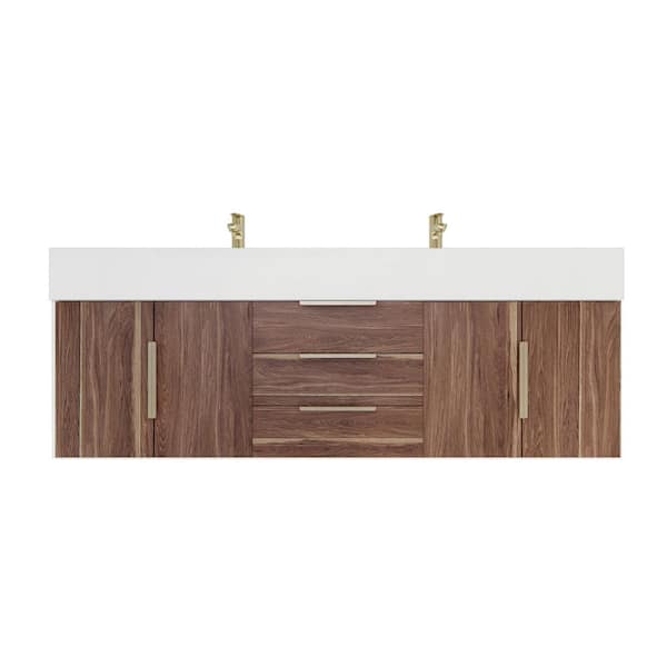 Bethany 59 in. W. x 20 in. D x 22 in. H Double Sink Floating Bath Vanity in White Oak with White Acrylic Top