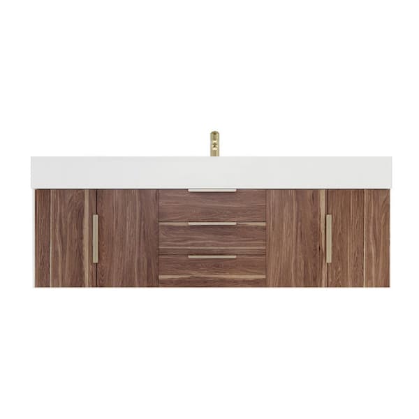 Bethany 59 in. W x 20 in. D x 22 in. H Single Sink Floating Bath Vanity in White Oak with White Acrylic Top