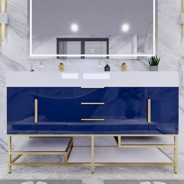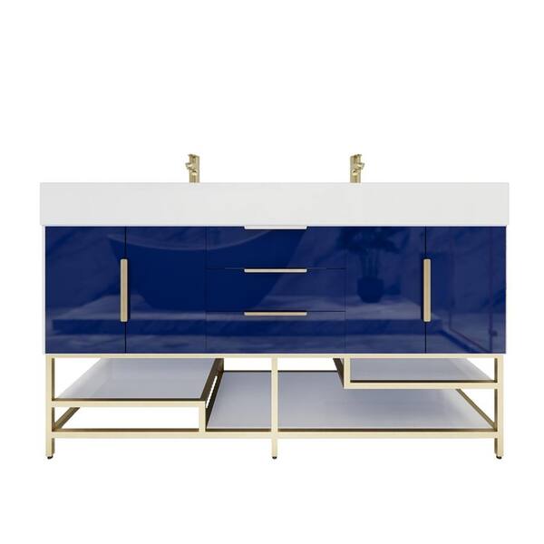 Bethany 59 in. W. x 20 in. D x 36 in. H Double Sink Freestanding Bath Vanity in Gloss Night Blue with White Acrylic Top
