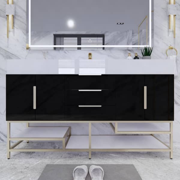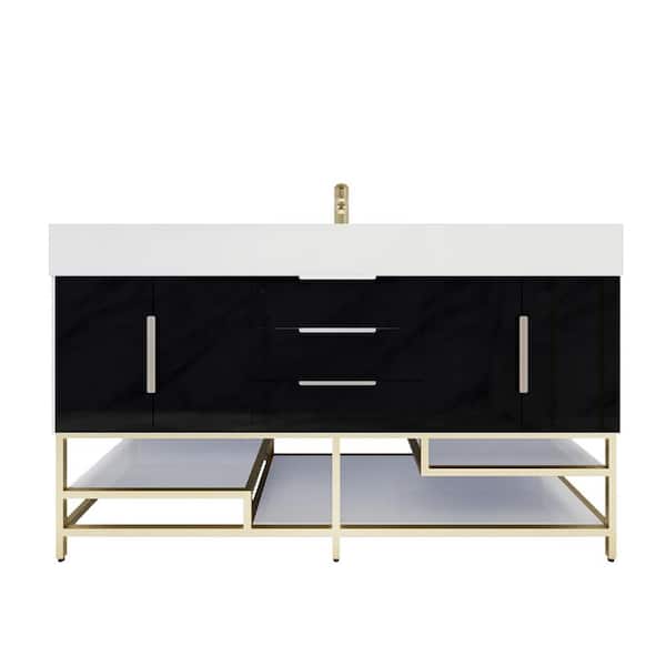 Bethany 59 in. W. x 20 in. D x 36 in. H Single Sink Freestanding Bath Vanity in Gloss Black with White Acrylic Top