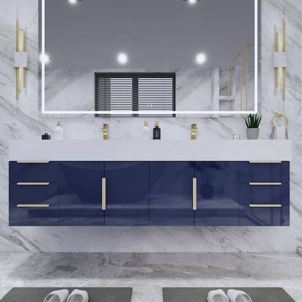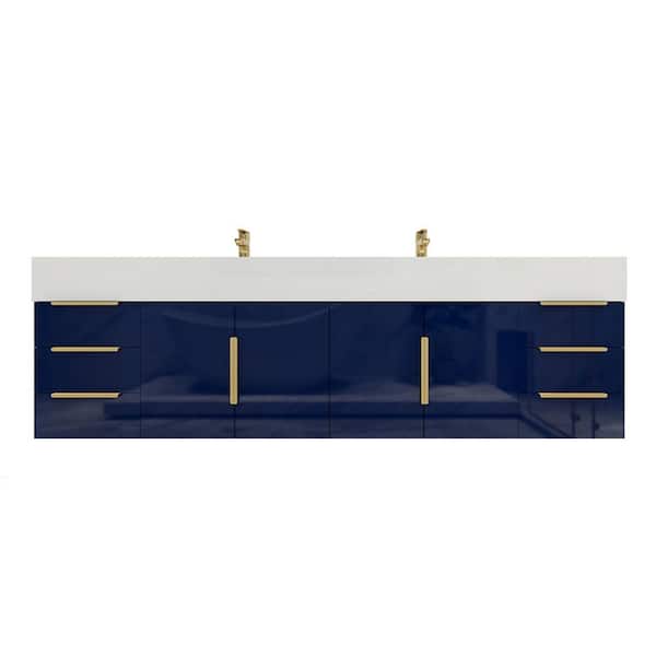 Bethany 71 in. W. x 20 in. D x 22 in. H Double Sink Floating Bath Double Vanity in Gloss Blue with White Acrylic Top