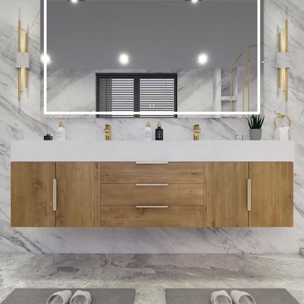 Bethany 71 in. W. x 20 in. D x 22 in. H Double Sink Floating Bath Vanity in Oak with White Acrylic Top