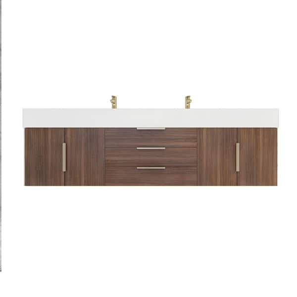 Bethany 71 in. W. x 20 in. D x 22 in. H Double Sink Floating Bath Vanity in Rosewood with White Acrylic Top