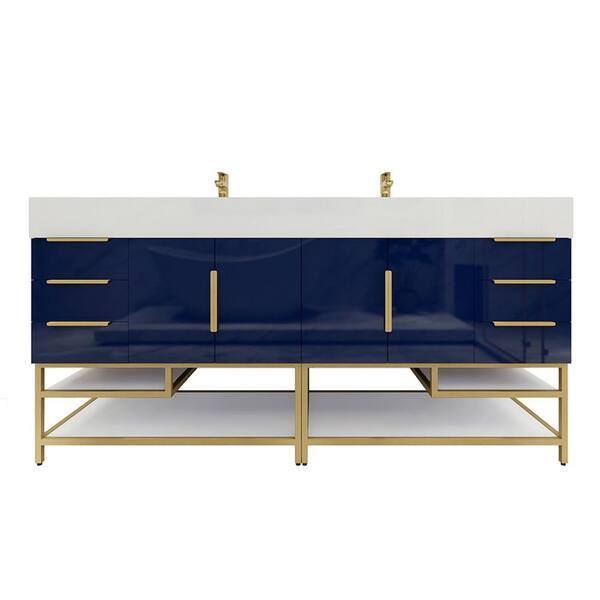 Bethany 71 in. W. x 20 in. D x 36 in. H Double Sink Freestanding Bath Double Vanity in Night Blue with White Acrylic Top