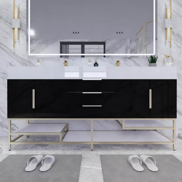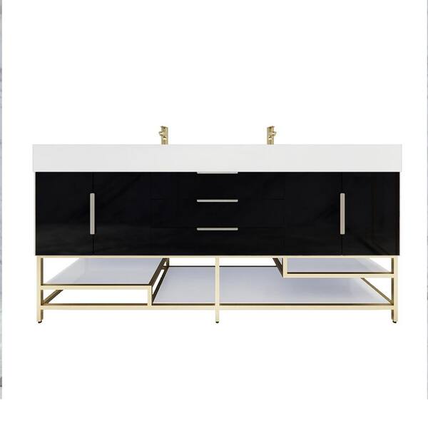 Bethany 71 in. W. x 20 in. D x 36 in. H Double Sink Freestanding Bath Vanity in Gloss Black with White Acrylic Top