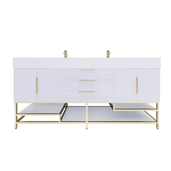 Bethany 71 in. W. x 20 in. D x 36 in. H Double Sink Freestanding Bath Vanity in High Gloss White with White Acrylic Top