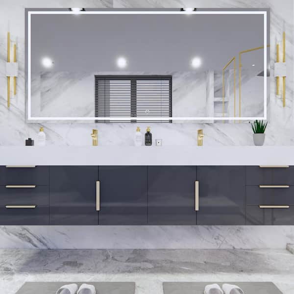 Bethany 84 in. W x 20 in. D x 22 in. H Double Sink Floating Bath Vanity in Gloss Gray with White Acrylic Top