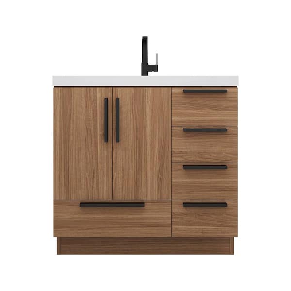 Carla 36 in. W x 20 in. D x 35 in. H Single Sink Freestanding Bath Vanity in Rose Wood with White Acrylic Top