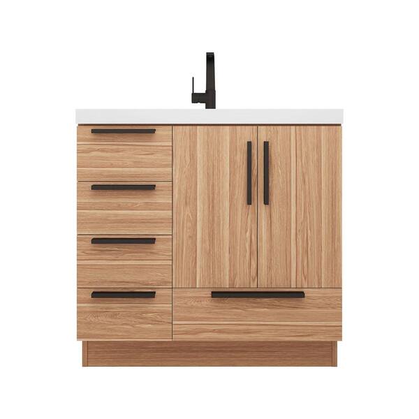 Carla 36 in. W x 20 in. D x 35 in. H Single Sink Freestanding Bath Vanity in White Oak with White Acrylic Top