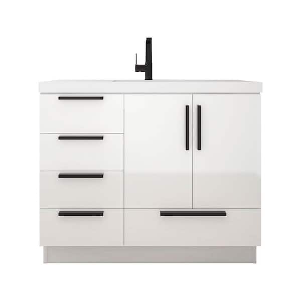 Carla 42 in. W x 20 in. D x 35 in. H Single Sink Freestanding Bath Vanity in Gloss White with White Acrylic Top