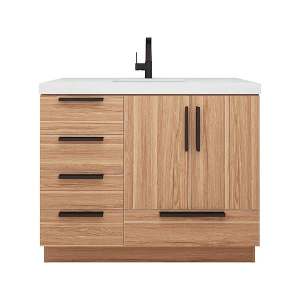 Carla 42 in. W x 20 in. D x 35 in. H Single Sink Freestanding Bath Vanity in White Oak with White Acrylic Top