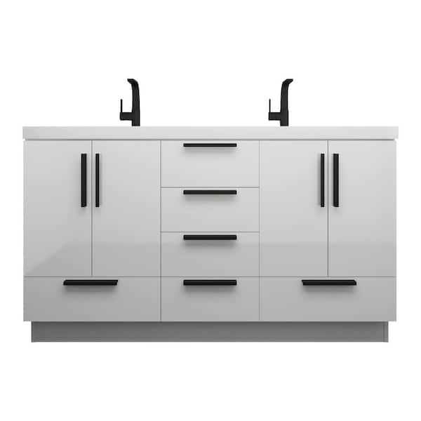 Carla 59 in. W x 20 in. D x 35 in. H Double Sink Freestanding Bath Vanity in Gloss White with White Acrylic Top