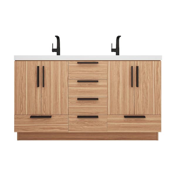 Carla 59 in. W x 20 in. D x 35 in. H Double Sink Freestanding Bath Vanity in White Oak with White Acrylic Top