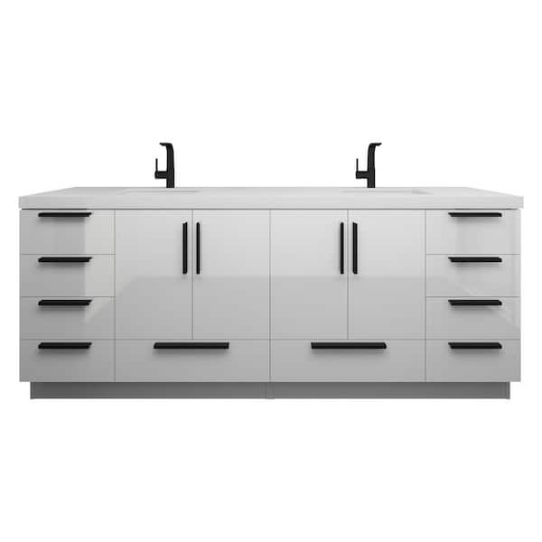 Carla 84 in. W x 20 in. D x 35 in. H Double Sink Freestanding Bath Vanity in Gloss White with White Acrylic Top