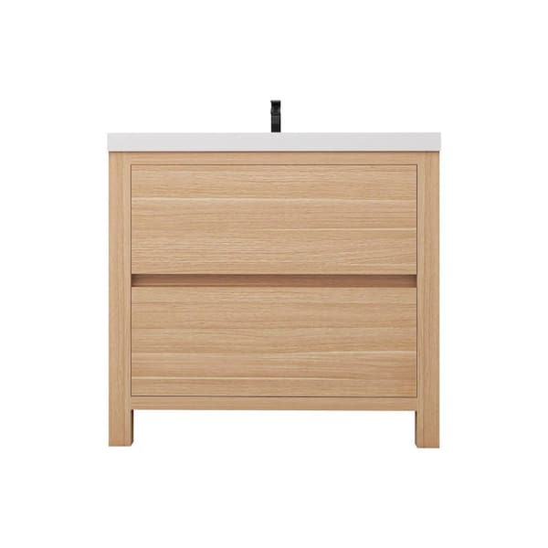 Louis 36 in. W x 20 in. D x 35 in. H Single Sink Freestanding Bath Vanity in Champagne Oak with White Acrylic Top