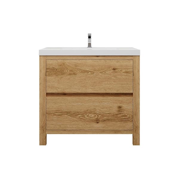 Louis 36 in. W x 20 in. D x 35 in. H Single Sink Freestanding Bath Vanity in Yellow Wood with White Acrylic Top