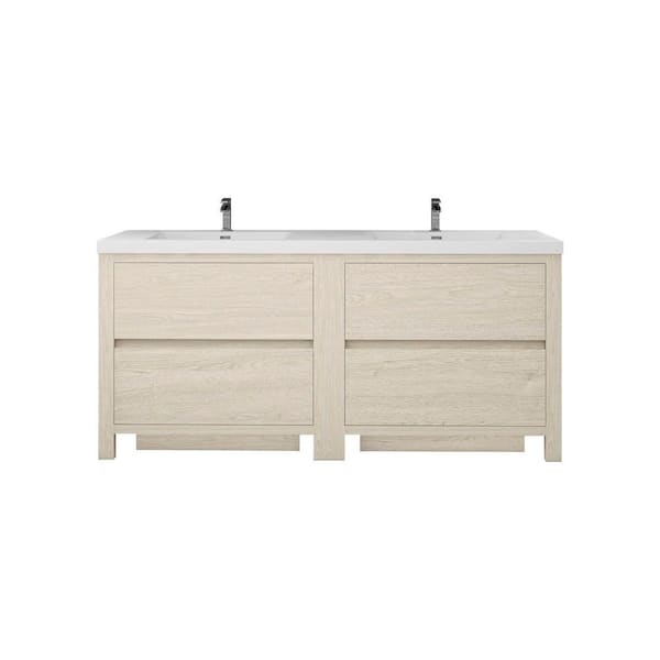 Louis 71 in. W x 20 in. D x 35 in. H Double Sink Freestanding Bath Vanity in Light Wood with White Acrylic Top