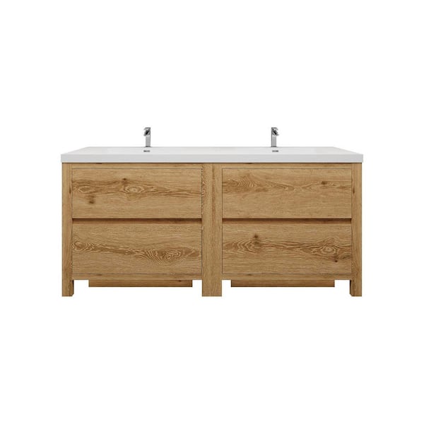 Louis 71 in. W x 20 in. D x 35 in. H Double Sink Freestanding Bath Vanity in Yellow Wood with White Acrylic Top