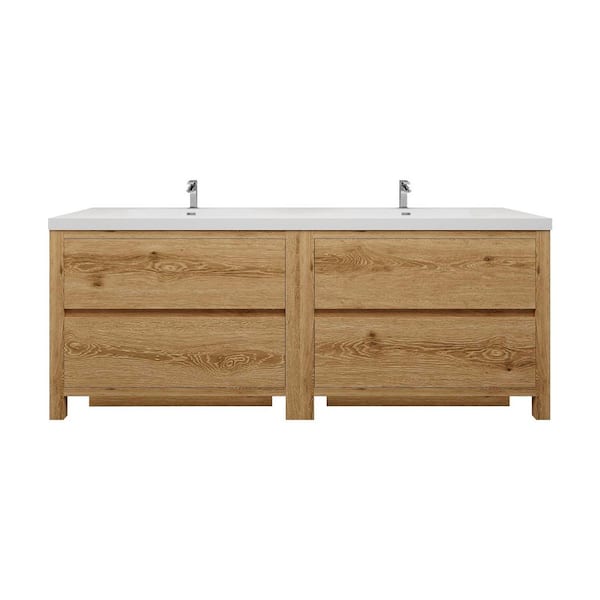 Louis 84 in. W x 20 in. D x 35 in. H Double Sink Freestanding Bath Vanity in Yellow Wood with White Acrylic Top