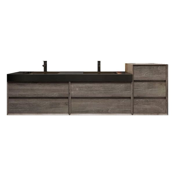 MIA 91 in. W x 20 in. D x 30 in. H Double Sink & Side Cabinet Bath Vanity in Gray Oak with Black Stainless Steel Top