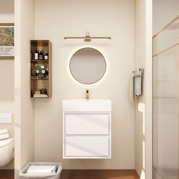 Saggie 24 in. W x 20 in. D x 28 in. H Single Sink Floating Bath Vanity in Gloss White with White Acrylic Top