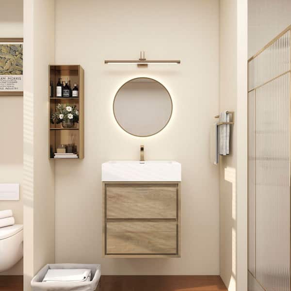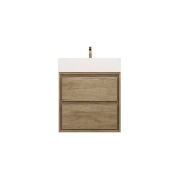Saggie 24 in. W x 20 in. D x 28 in. H Single Sink Floating Bath Vanity in White Oak with White Acrylic Top