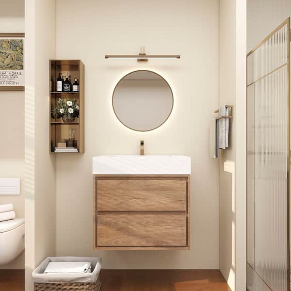 Saggie 30 in. W. x 20 in. D x 28 in. H Single Sink Floating Bath Vanity in Teak Oak with White Acrylic Top