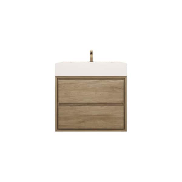 Saggie 30 in. W x 20 in. D x 28 in. H Single Sink Floating Bath Vanity in White Oak with White Acrylic Top