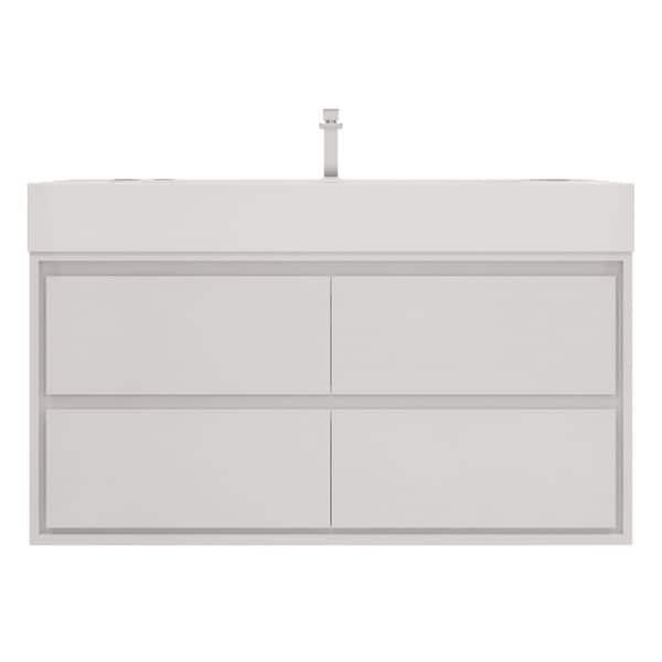 Saggie 47 in. W. x 20 in. D x 28 in. H Single Sink Floating Bath Vanity in Gloss White with White Acrylic Top