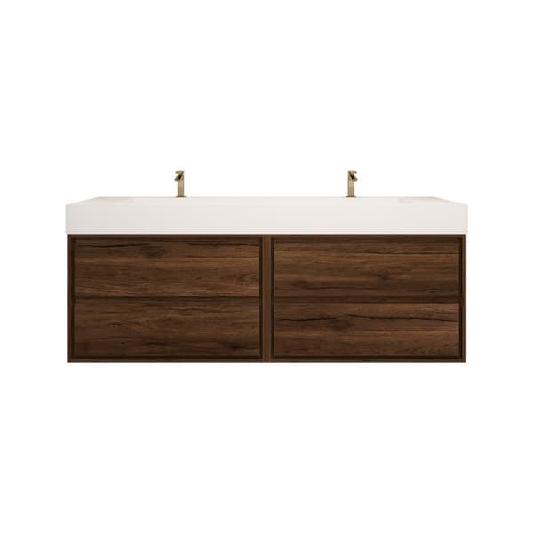Saggie 59 in. W. x 20 in. D x 28 in. H Double Sink Floating Bath Double Vanity in Rosewood with White Acrylic Top