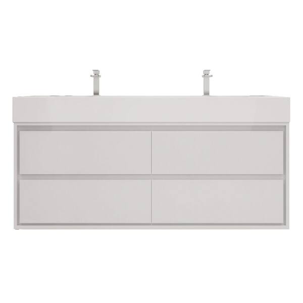 Saggie 59 in. W. x 20 in. D x 28 in. H Double Sink Floating Bath Vanity in Gloss White with White Acrylic Top