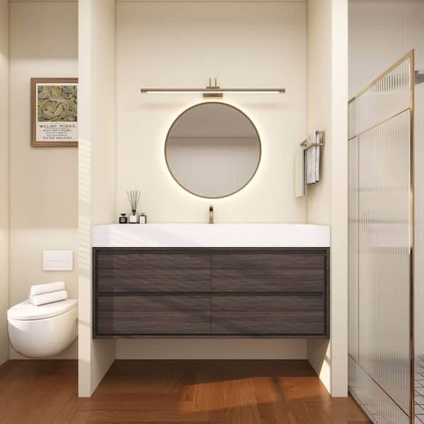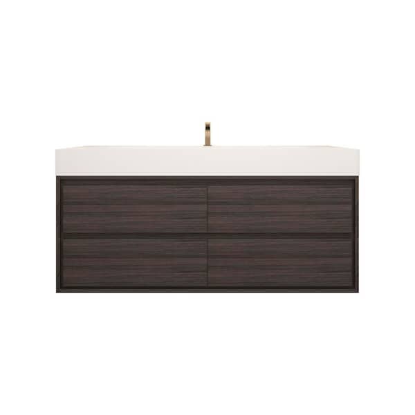 Saggie 59 in. W. x 20 in. D x 28 in. H Single Sink Floating Bath Vanity in Dark Gray Oak with White Acrylic Top