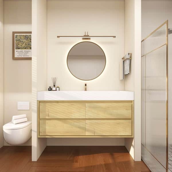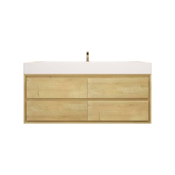 Saggie 59 in. W. x 20 in. D x 28 in. H Single Sink Floating Bath Vanity in Oak with White Acrylic Top