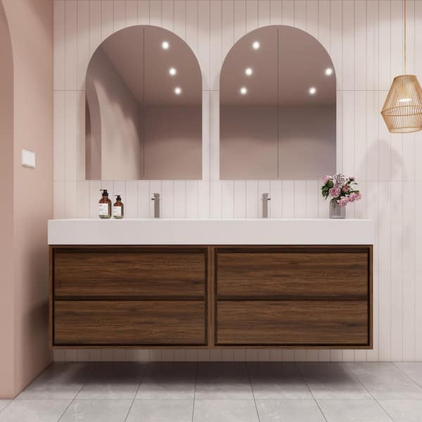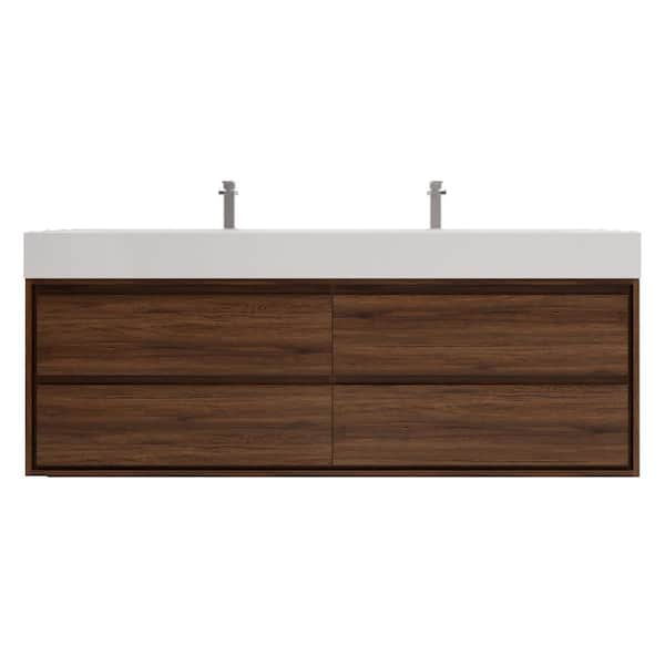 Saggie 71 in. W. x 20 in. D x 28 in. H Double Sink Floating Bath Double Vanity in Rosewood with White Acrylic Top