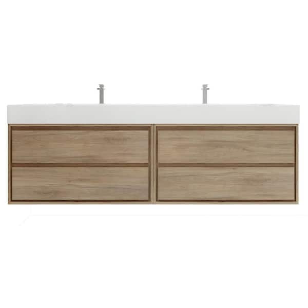 Saggie 84 in. W x 20 in. D x 28 in. H Double Sink Floating Bath Double Vanity in White Oak with White Acrylic Top
