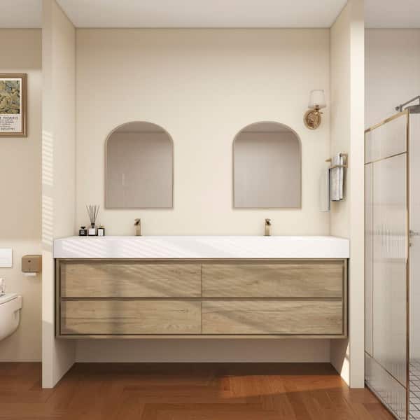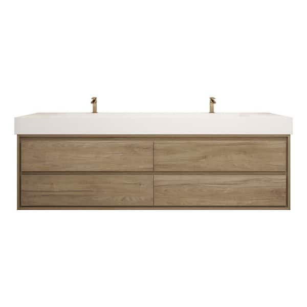 Saggie 84 in. W. x 20 in. D x 28 in. H Double Sink Floating Bath Vanity in White Oak with White Acrylic Top