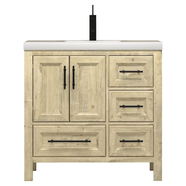 VIV 36 in. W x 20 in. D x 35 in. H Single Sink Freestanding Bath Vanity in Pale French Oak with White Acrylic Top