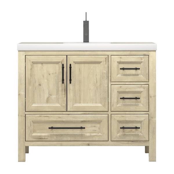 VIV 42 in. W x 20 in. D x 35 in. H Single Sink Freestanding Bath Vanity in Pale French Oak with White Acrylic Top