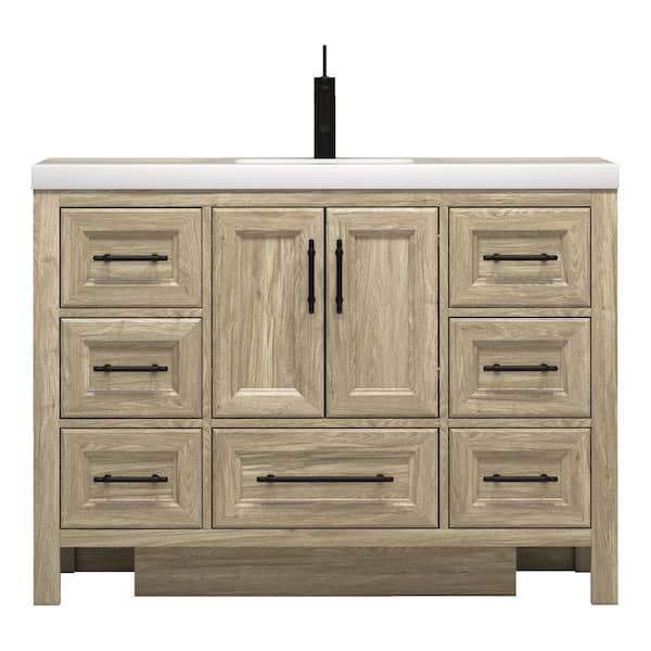 VIV 47 in. W x 20 in. D x 35 in. H Single Sink Freestanding Bath Vanity in Dark French Oak with White Acrylic Top