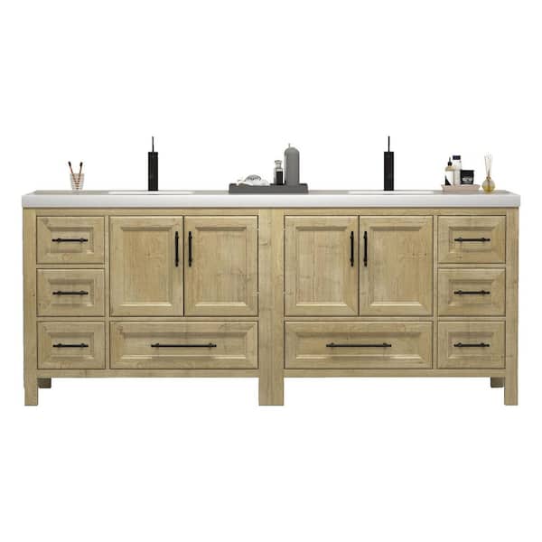 VIV 84 in. W x 20 in. D x 35 in. H Double Sink Freestanding Bath Vanity in Teak Oak with White Acrylic Top