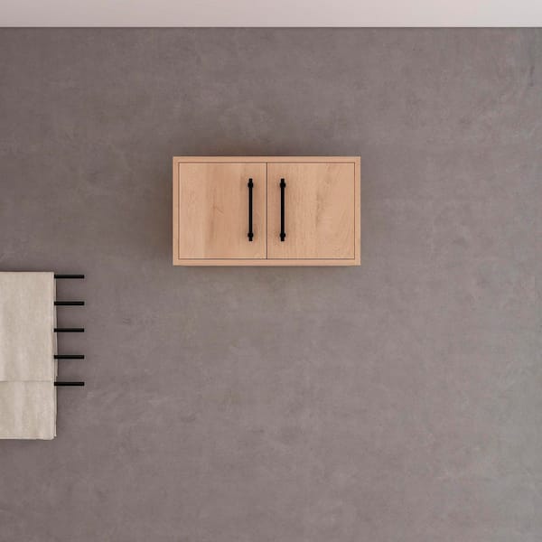 Victoria 23.8 in. W x 11.8 in. D x 13.78 in. H Brown Plywood Wall Overhead Floating Linen Cabinet in Red Oak