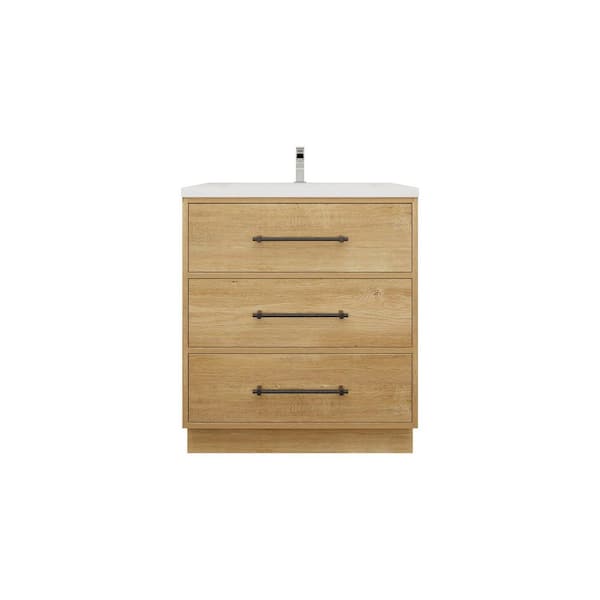 Victoria 30 in. W x 20 in. D x 35 in. H Single Sink Freestanding Bath Vanity in Oak with White Acrylic Top