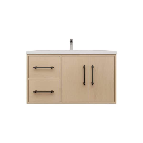 Victoria 36 in. W x 20 in. D x 22 in. H Single Sink Floating Bath Vanity in Yellow Oak with White Acrylic Top