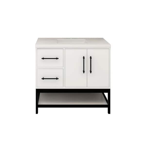 Victoria 36 in. W x 20 in. D x 35 in. H Single Sink Freestanding Frame Bath Vanity in Gloss White with White Acrylic Top