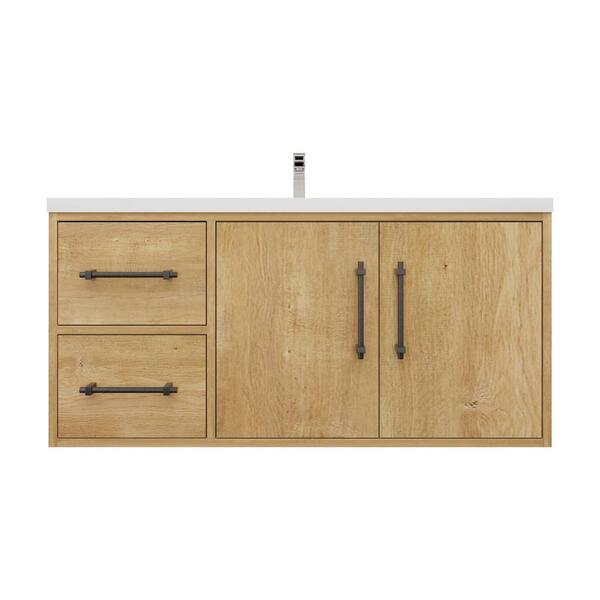Victoria 42 in. W x 20 in. D x 22 in. H Single Sink Floating Bath Vanity in Oak with White Acrylic Top
