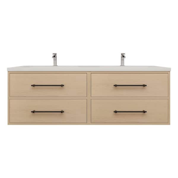 Victoria 47 in. W x 20 in. D x 22 in. H Double Sink Floating Bath Vanity in Yellow Oak with White Acrylic Top