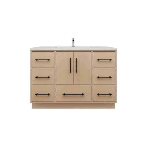 Victoria 47 in. W x 20 in. D x 35 in. H Single Sink Freestanding Bath Vanity in Yellow Oak with White Acrylic Top